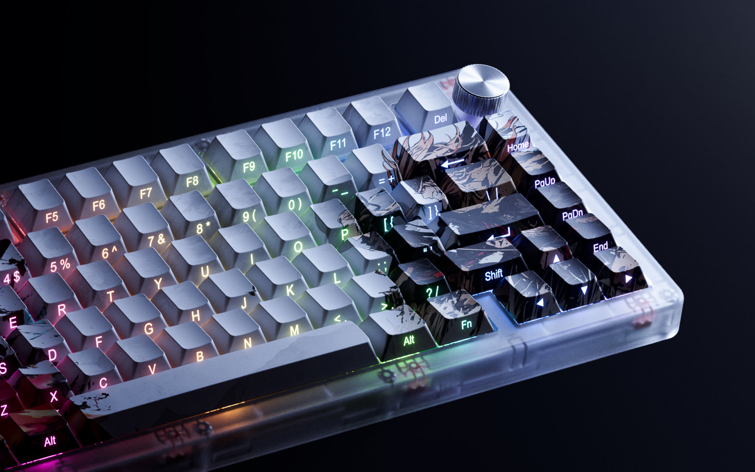 Un knob dedicat pentru controlul volumului, integrat elegant în colțul tastaturii, îți permite să reglezi sunetul rapid, fără combinații de taste sau meniuri. Ideal în timpul jocului, când vrei control instant fără să pierzi focusul.