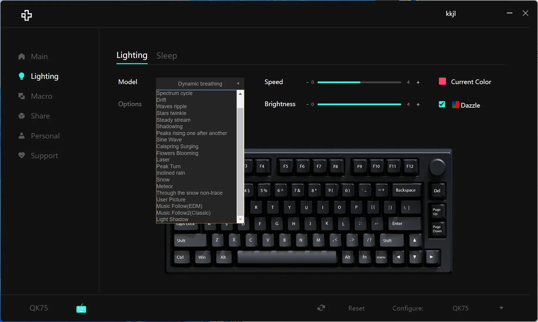 Poți programa Knob-ul așa cum îți doreăti folosind Software-ul personal QwertyKey75. Luminozitate, Volum și așa mai departe. Fii creativ!