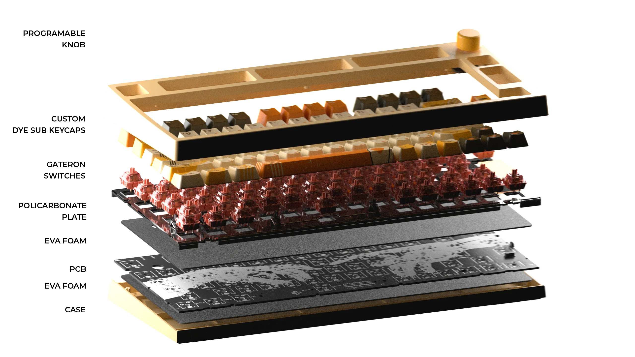 Tastatura conține 2 straturi de spumă EVA pentru o acustica mai bună. Un strat de spumă se află între PCB (partea electronică) și plate-ul tastaturii și un alt strat în case-ul acesteia.