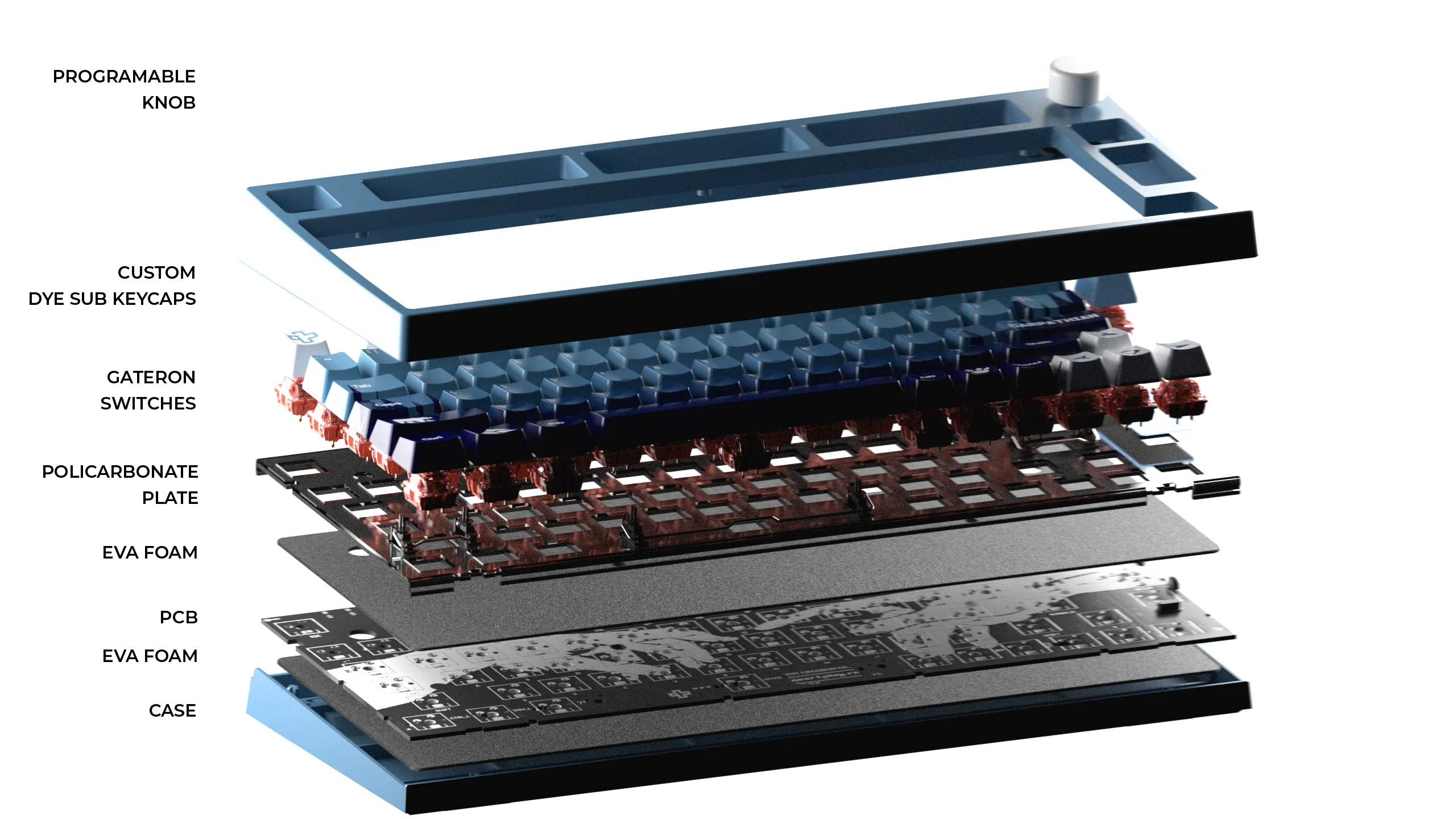 Tastatura conține 2 straturi de spumă EVA pentru o acustica mai bună. Un strat de spumă se află între PCB (partea electronică) și plate-ul tastaturii și un alt strat în case-ul acesteia.