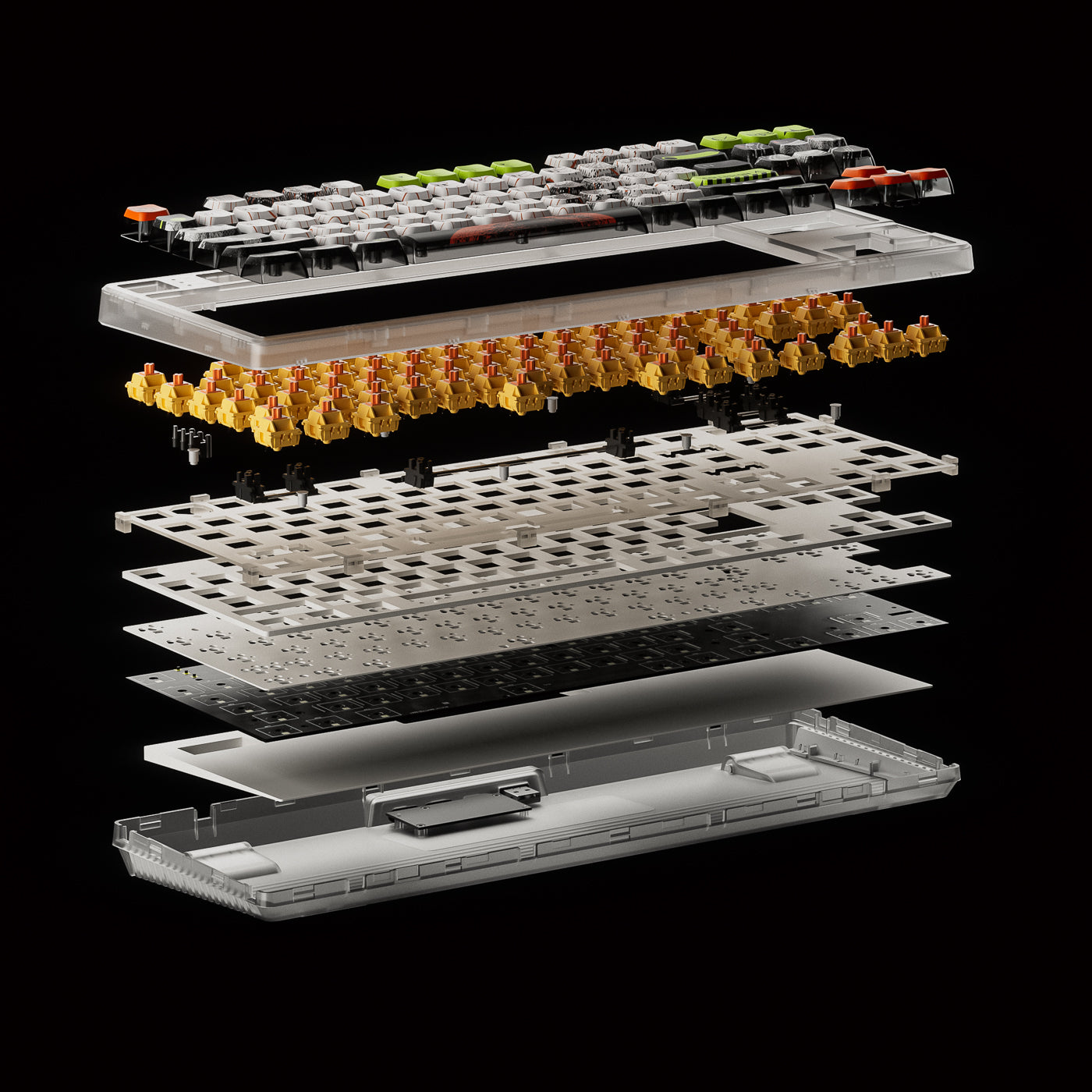 Această tastatură utilizează un sistem de montare pe garnituri, care implică montarea PCB-ului cu garnituri moi ce îl amortizează împotriva carcasei. Acest design oferă o senzație de tastare mai moale și îmbunătățește acustica prin reducerea vibrațiilor.