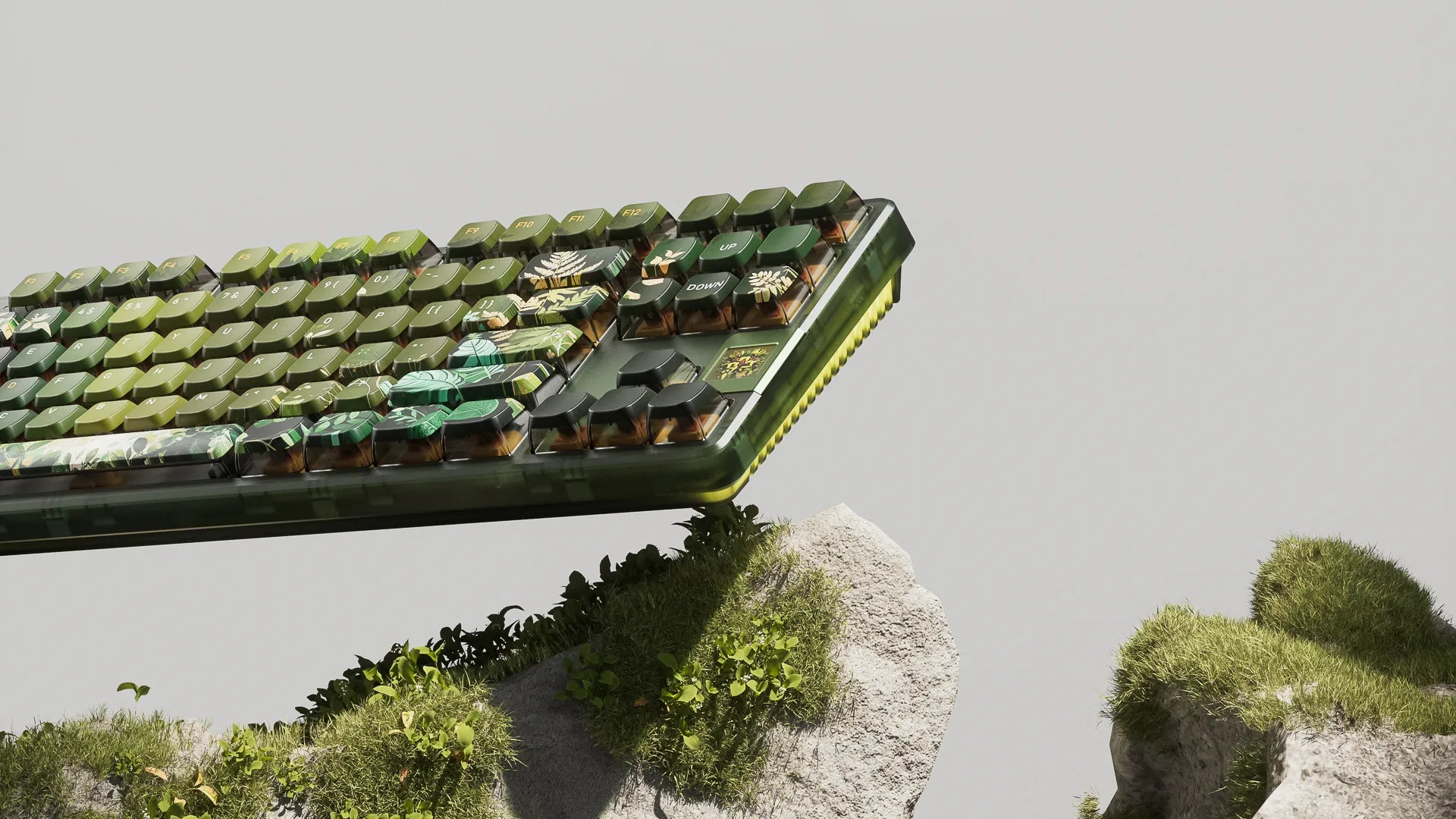 Tastatura QK80 Leaf se îmbină armonios cu tematica naturală, cu tastele sale înfășurate în nuanțe de verde și imprimate cu motive de frunze. Fiecare apăsare pare să te aducă mai aproape de natură, chiar la biroul tău.