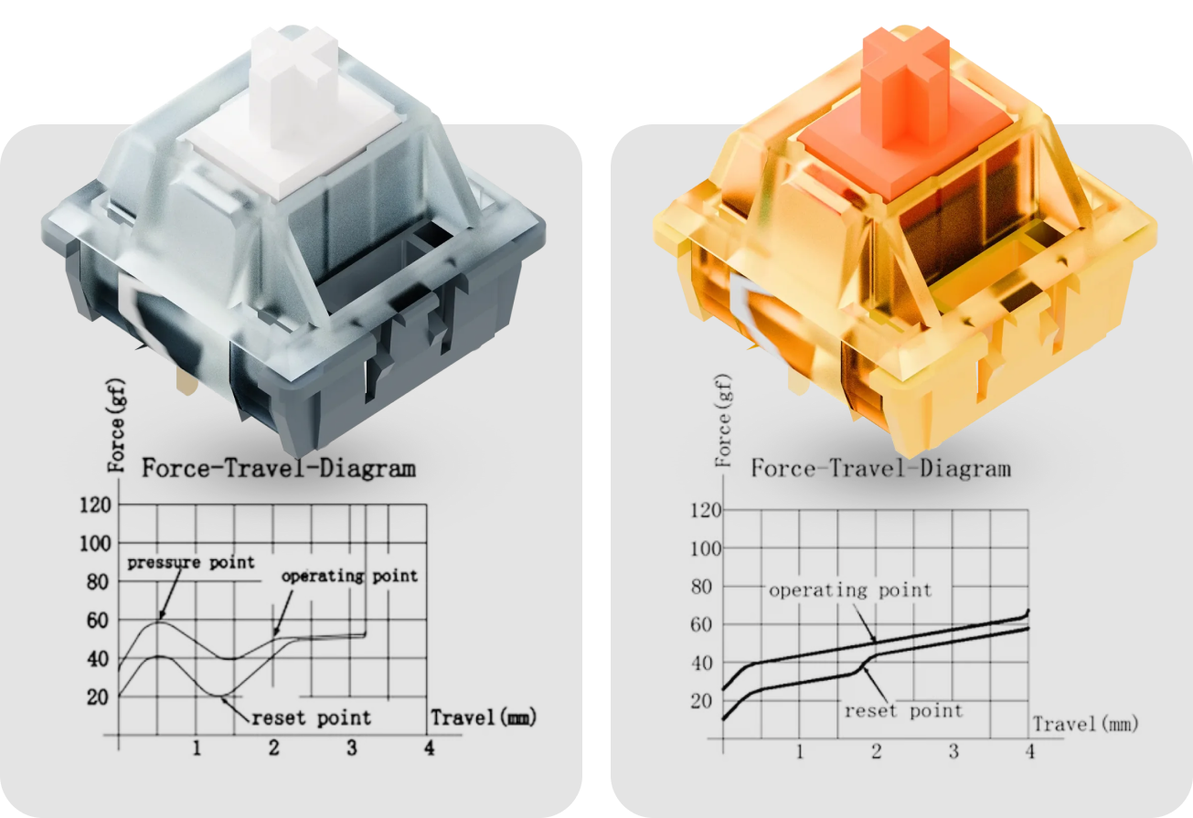 Switchuri pre-lubrifiate cu Krytox 205 și Krytox 105 direct pe tastatură. De asemenea greutatea arcului de 45g pentru cea mai bună acuratețe când vine vorba de gaming și nu numai. Ascultă sound test-ul!