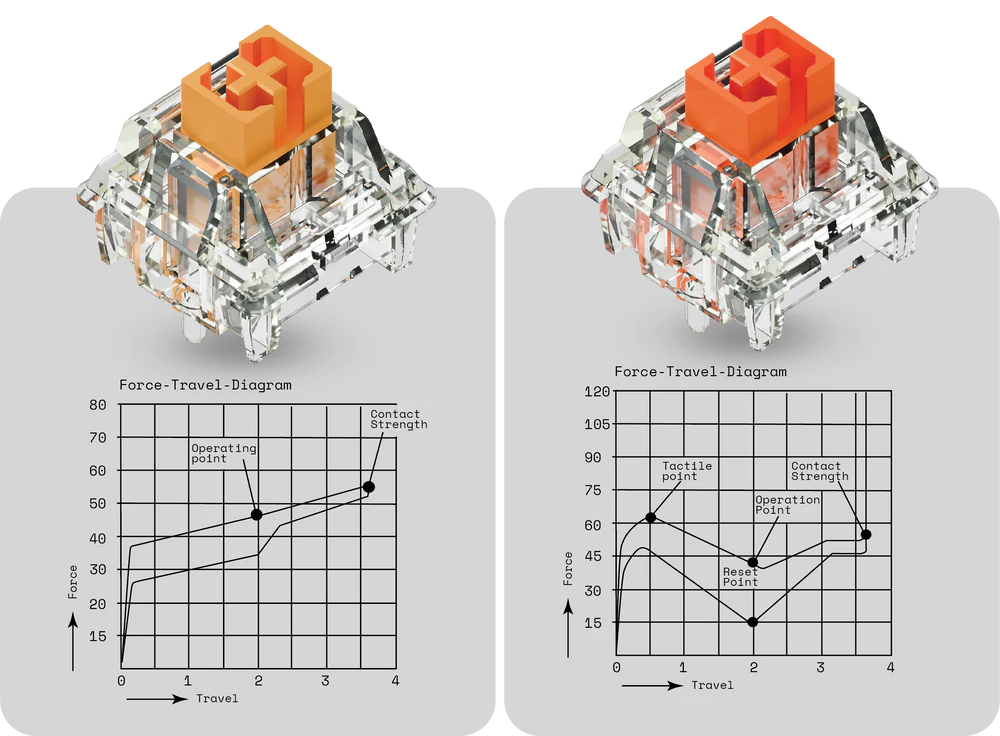 - Switch-uri QwertyKey Prelubrifiate: Optim concepute pentru gaming, aceste switch-uri au un arc de 55g, oferind un echilibru ideal între rapiditatea răspunsului și control, fără să provoace oboseală la sesiuni îndelungate de joc. Lubrifierea profesională asigură o experiență de tastare lină și fără zgomot excesiv.