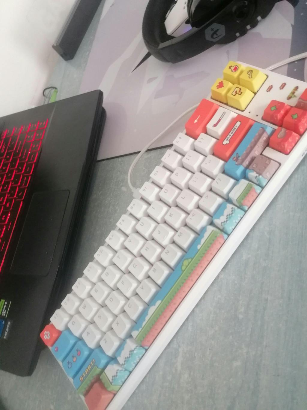 Tastatura prezentată cu numele "Metric" este proiectată cu un stil contemporan, îmbinând elemente geometrice îndrăznețe cu o paletă de culori vibrante și luminoase. Designul său unic include detalii grafice complexe, precum linii curbe, cercuri, triunghiuri și forme abstracte ce conferă un aspect futurist și dinamic
