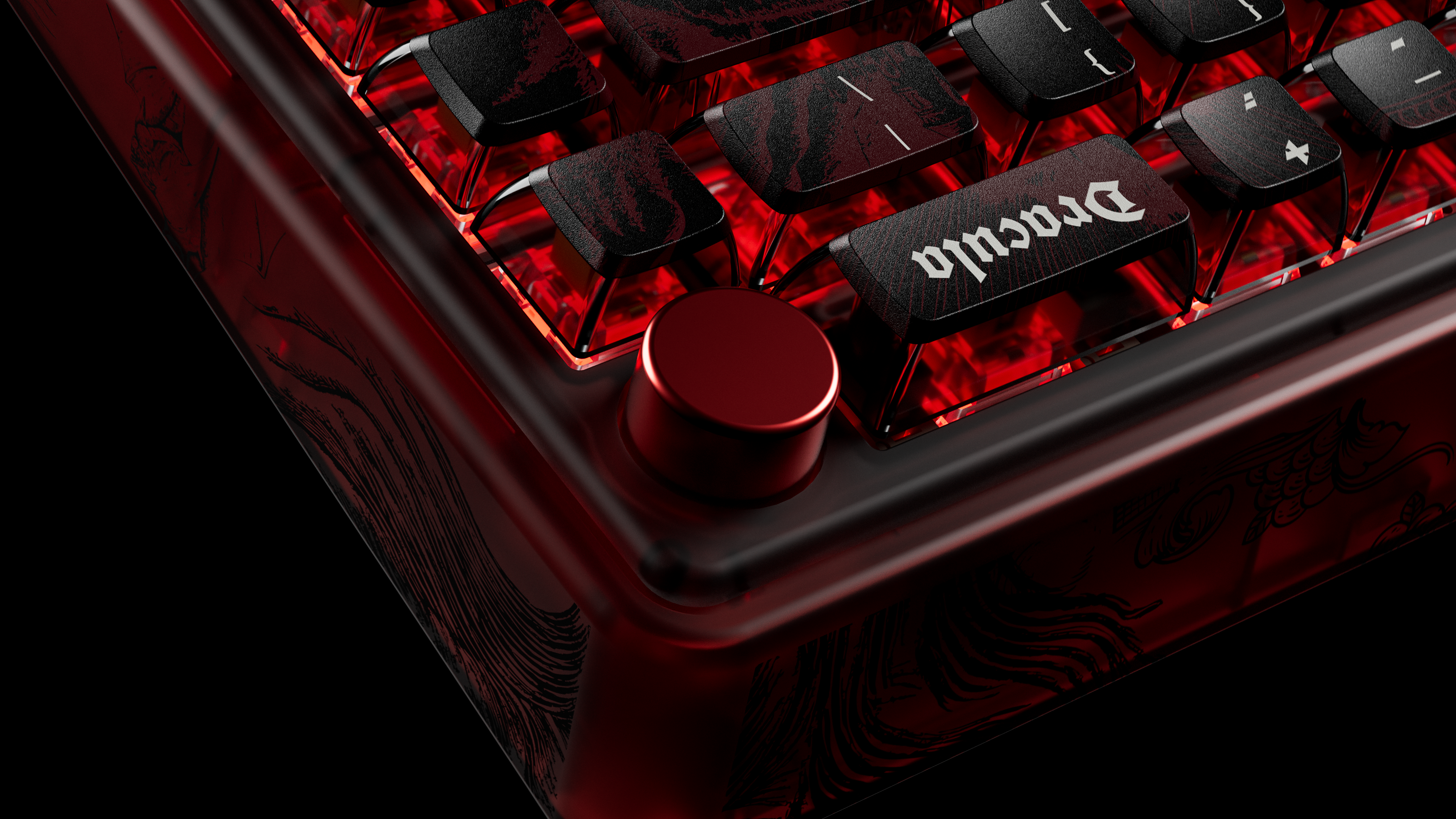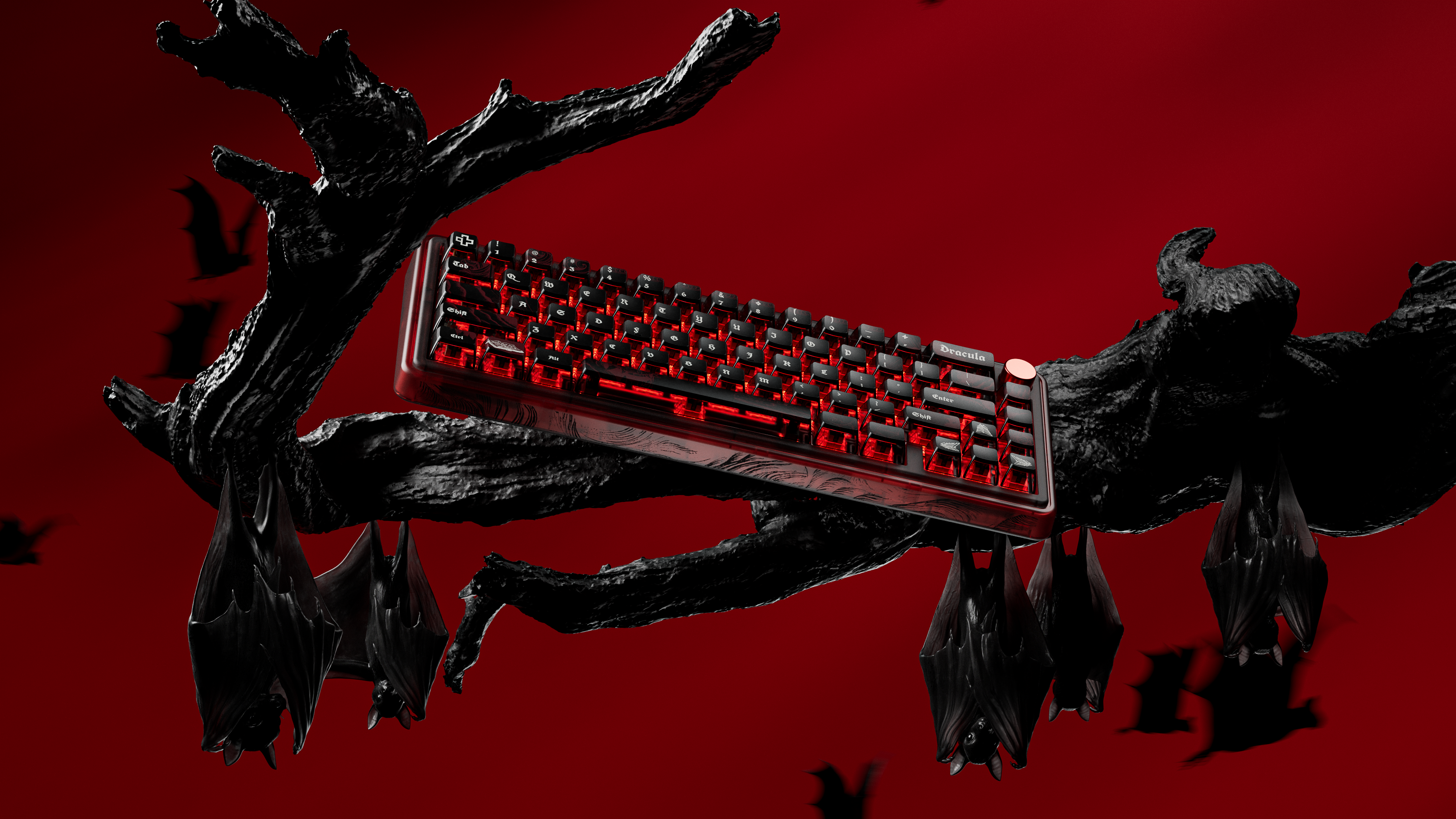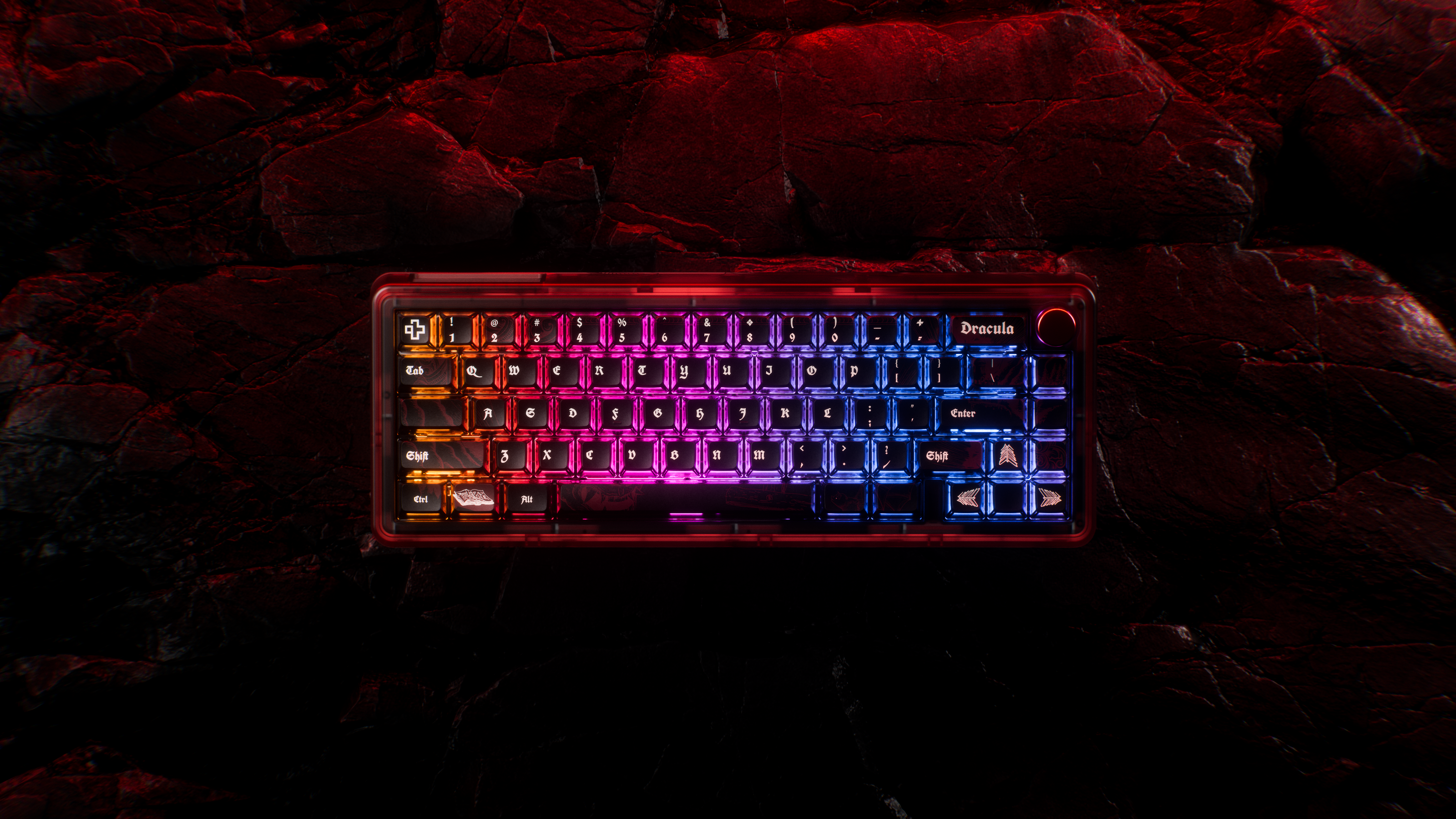 QK65 PRO Dracula – o tastatură născută în întunericul Transilvaniei, gândită chiar aici, în România. Cu un design gotic unic, realizat de noi, și detalii ce evocă legendele întunecate, acest model îmbină estetica sumbră cu o precizie de neegalat.