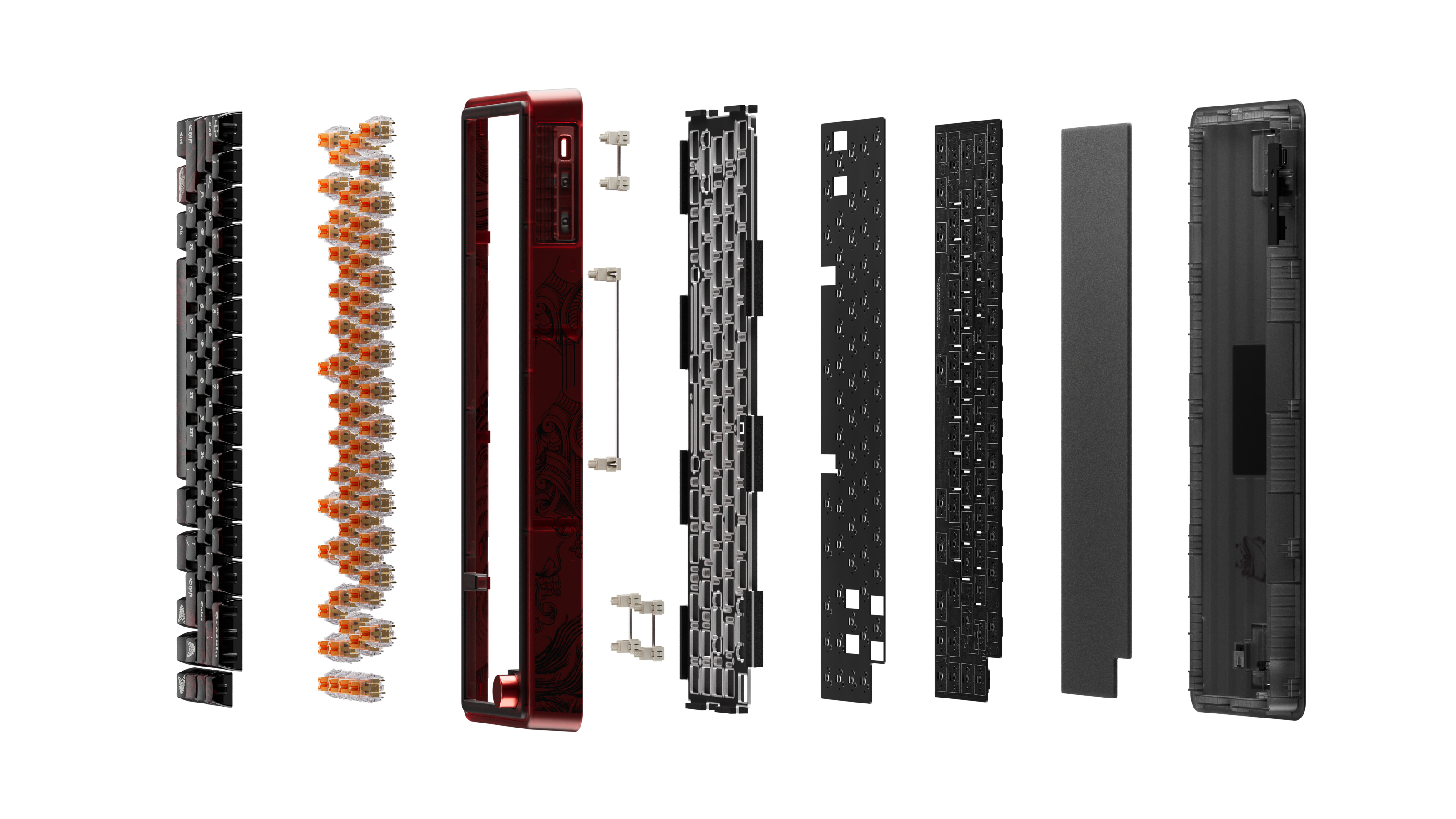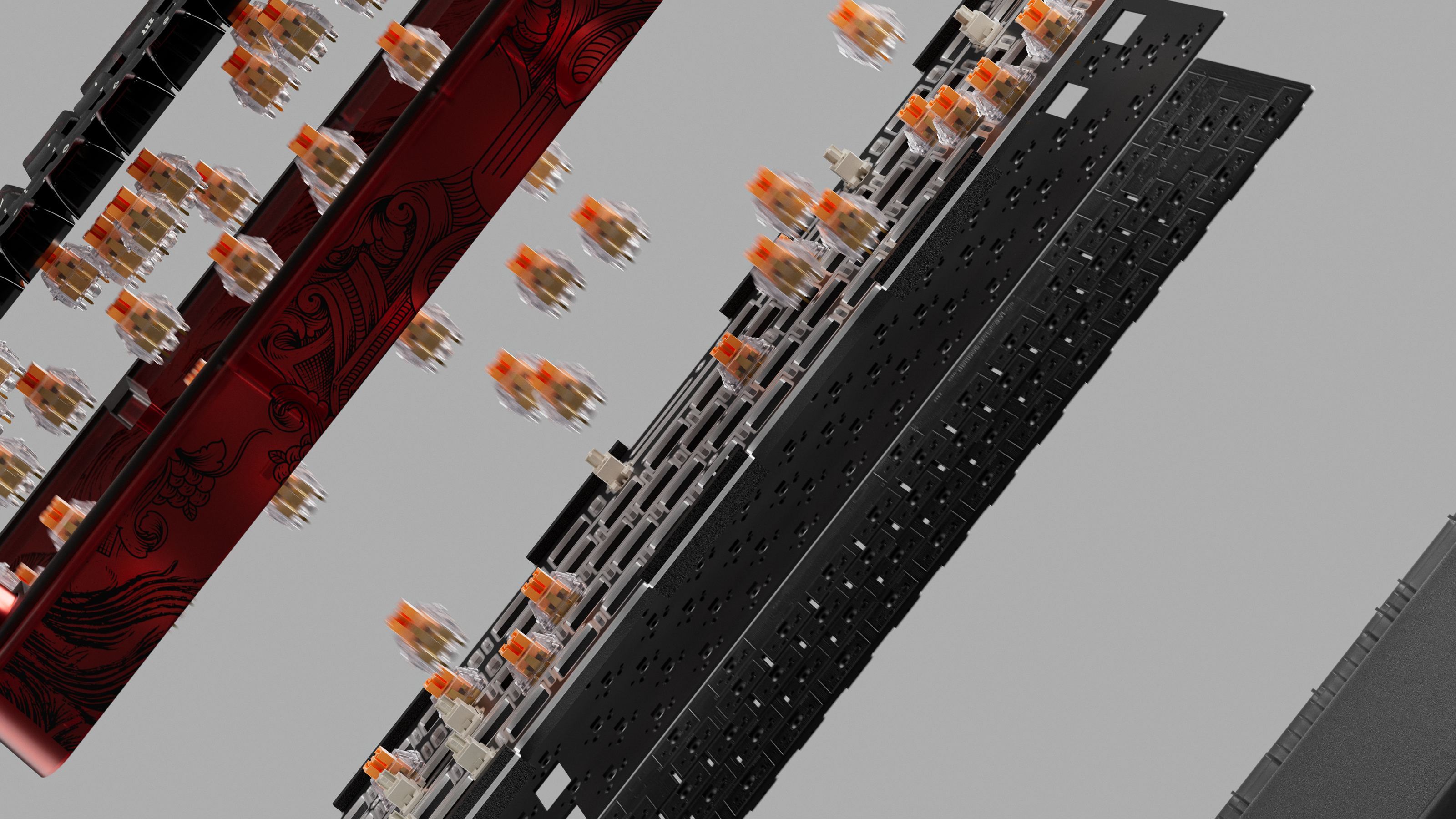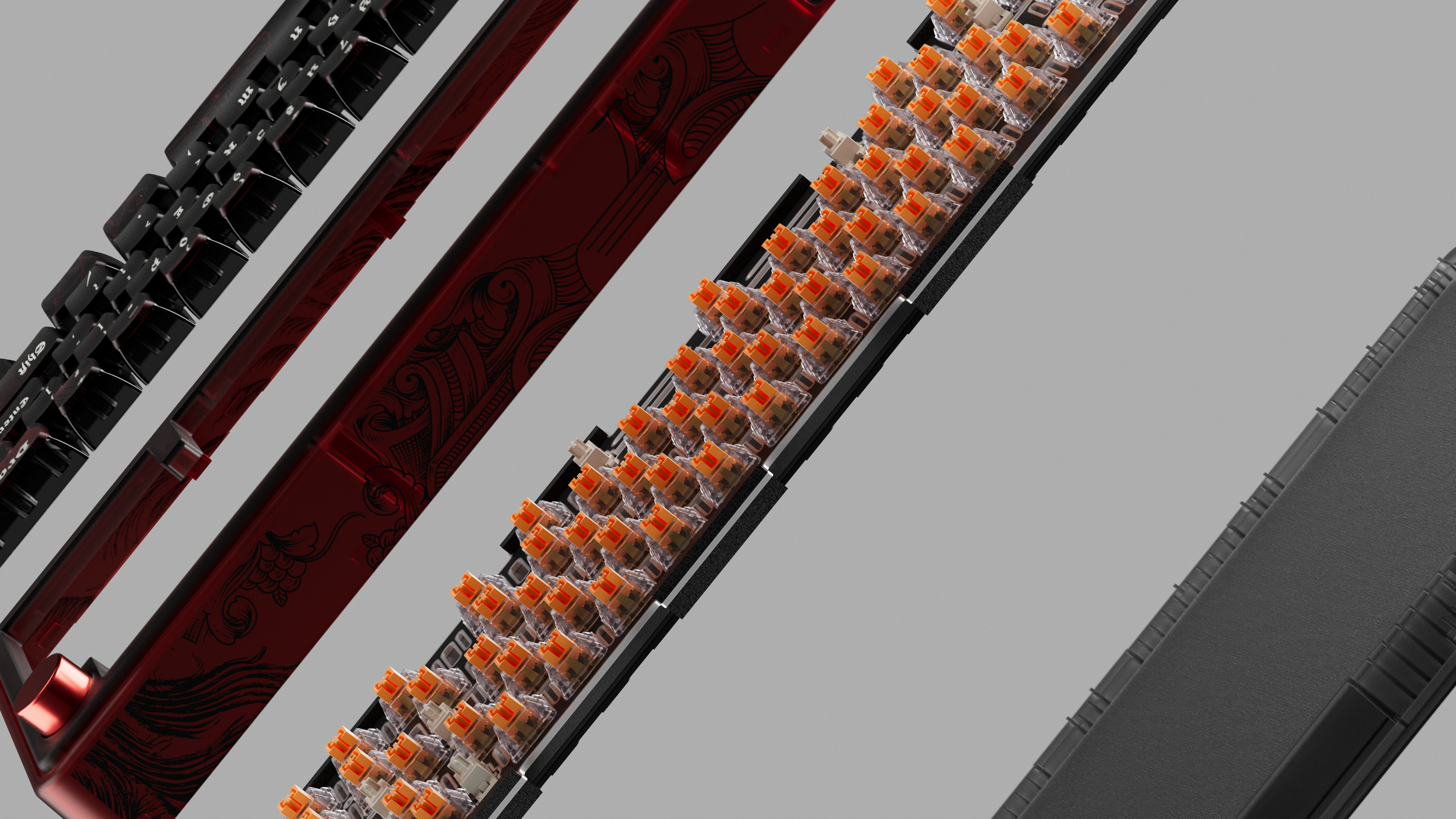 Configurație acustică optimizată, cu un strat de silicon între PCB și Plate, un strat de foam în carcasa tastaturii și un plate din FR4, pentru un sunet „thocky” și plăcut direct din cutie.